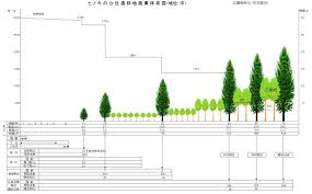 次にそのスペースに神社で見るような太く大きく育ったヒノキが何本入るでしょうか?広く伸びる枝や根も含めて想像してみましょう。