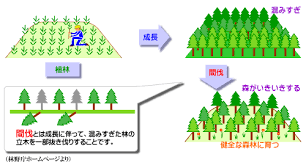 「スペース」を作るために混み合った木を伐る事。これが間伐です。